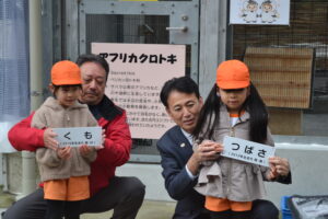 当日は、愛宕山公園のすぐ近くにある平田保育所の年長さんたちが参加し、アフリカクロトキに素敵な名前を付けてくれました。